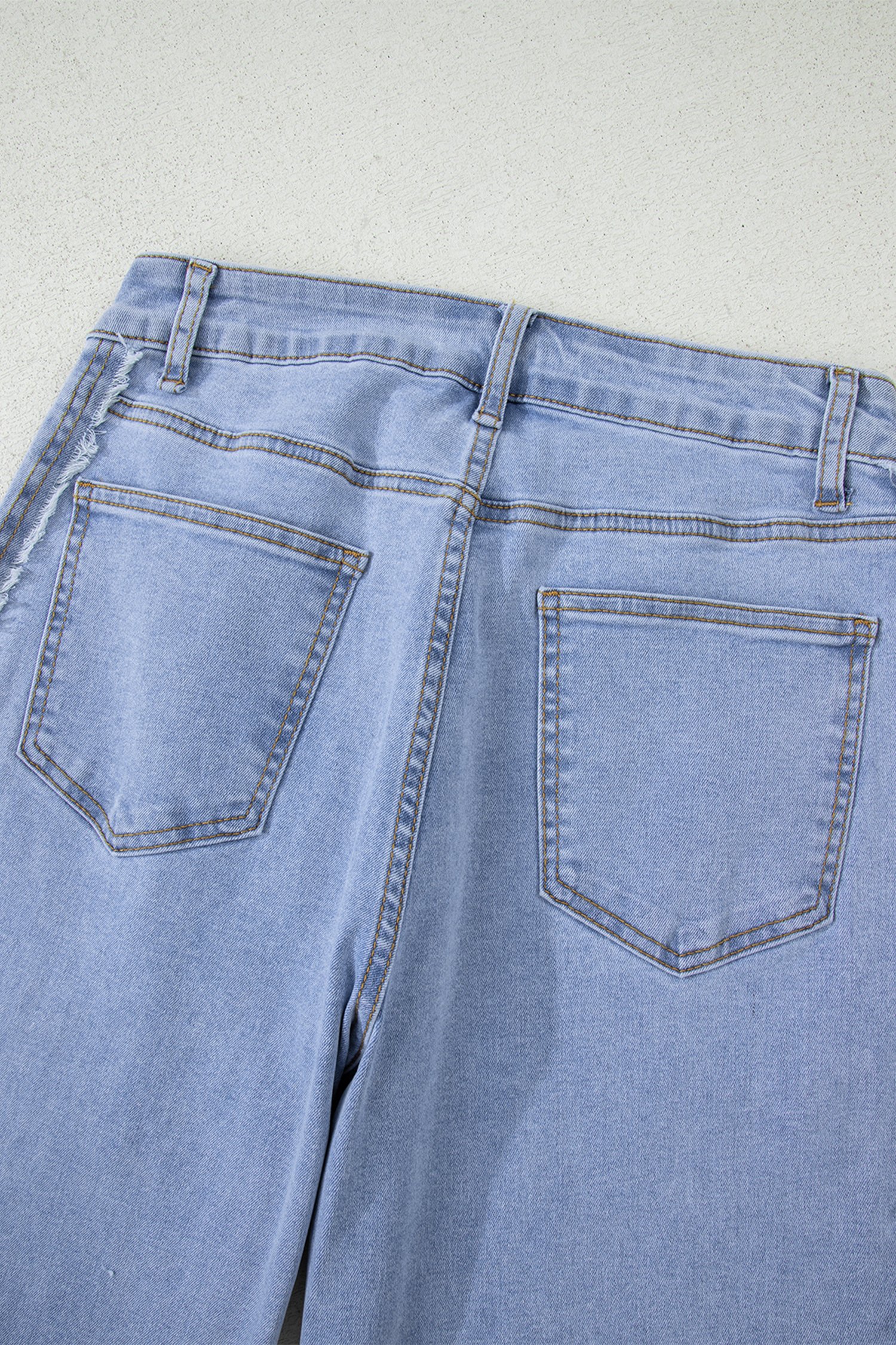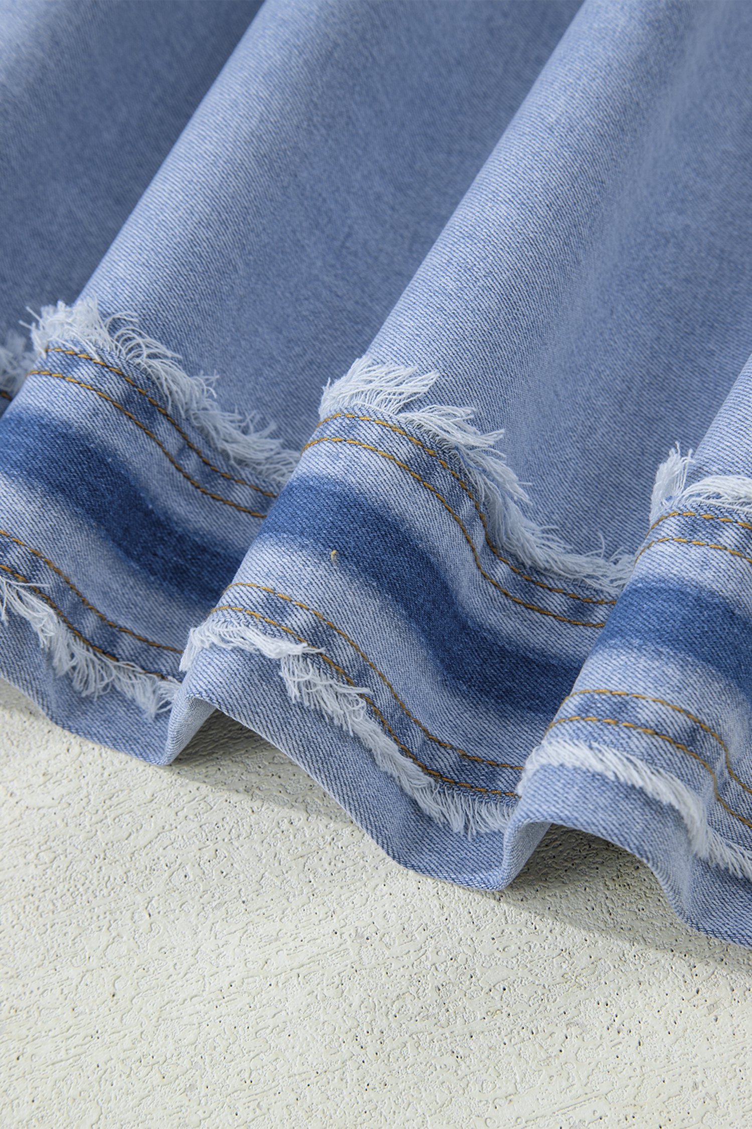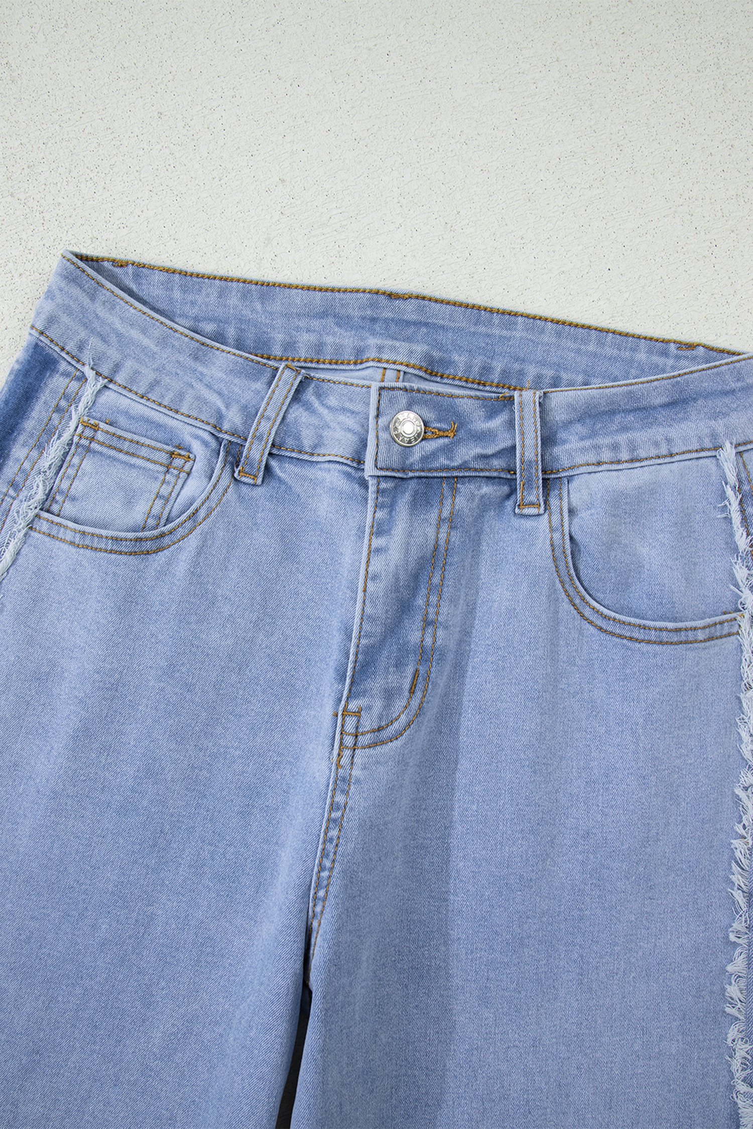 Frayed detailing adds deconstructed texture and urban distressed appeal.